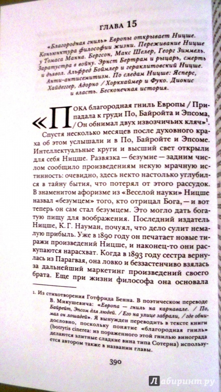 Я восхищаюсь Рюдигером Сафрански и его книгами. Вышедшие в серии ЖЗЛ книги "Гофман" и "Хайдеггер", великолепная книга о Гёте, прекрасная биография Шопенгауэра - это всё Сафрански. Что же касается Ницше, то лучшая книга о немецком философе написана не Сафрански, а Вальтером Кауфманом. Она вышла в с...