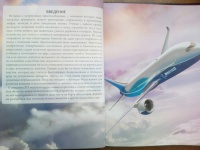 Очень хорошая книга. В ней рассказывается обо всех летательных аппаратах, даже о воздушном змее. В каждой главе описывается история появления, развития, управления аппаратом. Повествование подкреплено множеством ярких иллюстраций. Листы плотные, гладкие. Шрифт достаточно крупный, яркий.