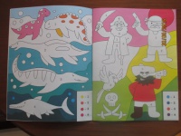 Здоровская раскраска для мальчишек. Взяла ее, т.к. ребенку понравилось раскрашивать по цифрам и здесь есть все, что ему нравится: пираты, привидения, динозавры, роботы.