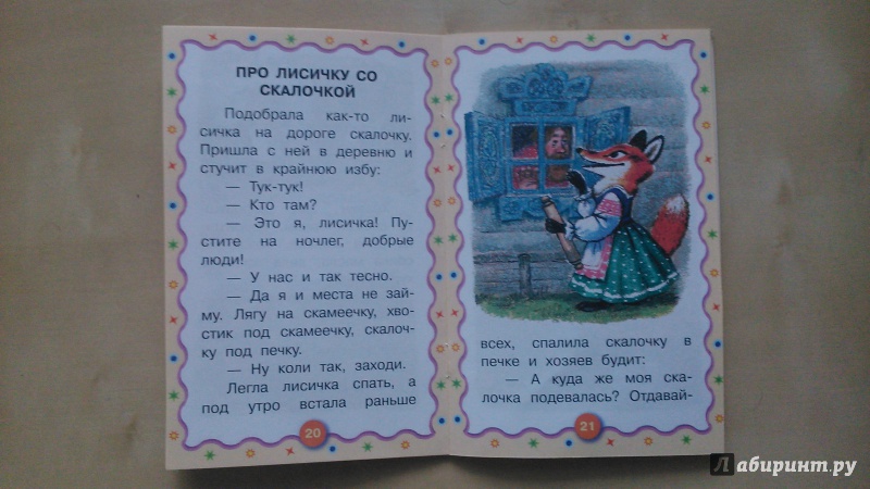 Замечательная книга карманного формата, при необходимости можно взять с собой чтобы занять ребенка. Картонная обложка, листы плотные белого цвета. В книге 4 сказки: "Теремок", "Петушок и бобовое зернышко", "Про лисичку со скалочкой", "маша и медведь".