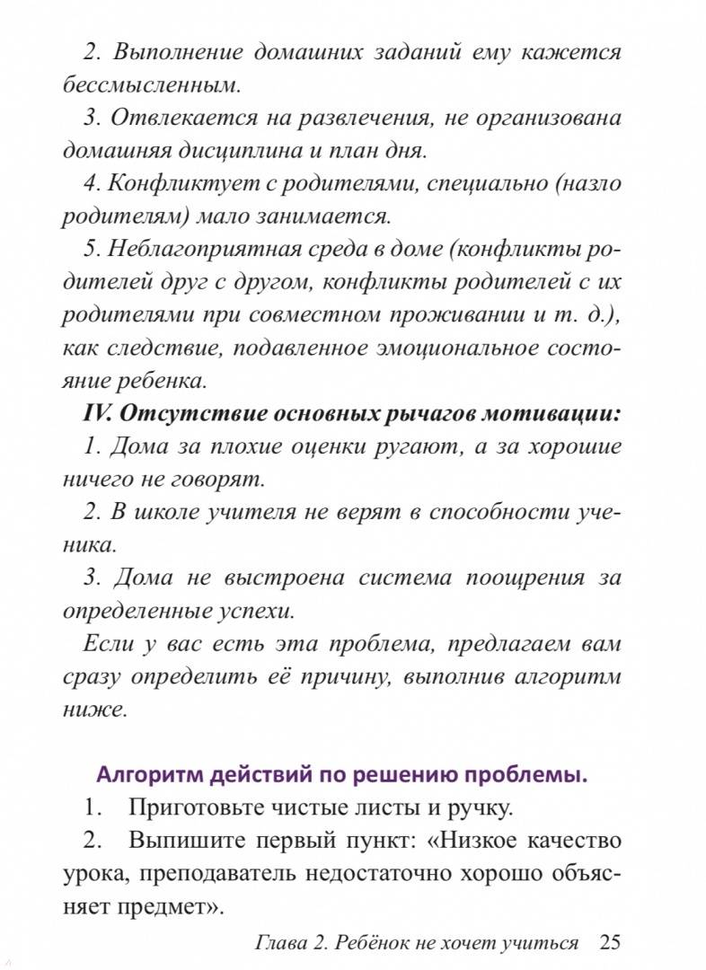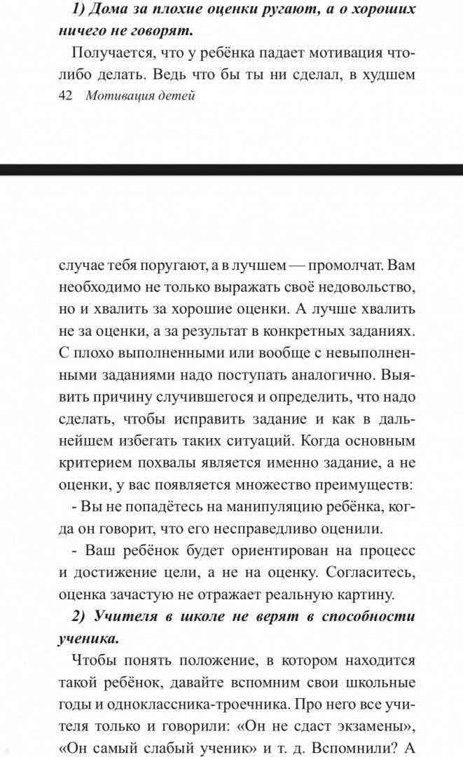 Книга охватывает разные стороны мотивации. Есть конкретные примеры , различные опросники с пояснениями для детей и родителей, рекомендации на разный возраст. В целом , книга полезная для родителей , которые отчаялись со своим школьником или хотят заранее изучить вопрос мотивации для дошкольника