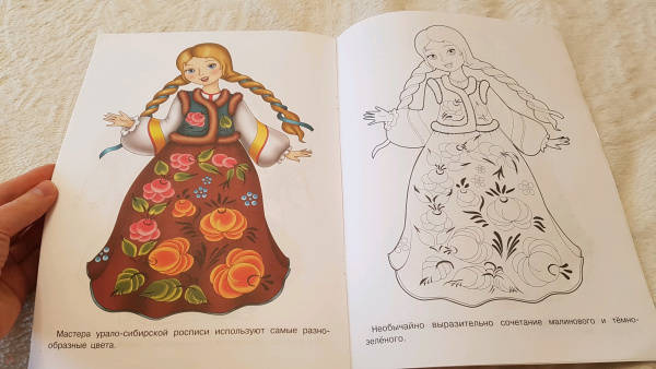 Эта серия просто восхитительная. Дочка из кол принесла на денек одну раскраску, чтобы себе отксерокопировать. И в результате мы с ней заказали сразу всю серию! И нисколько не пожалели. На каждый вид росписи отдельная раскраска, при том на одном развороте костюмы раскрашены и дается краткое описание характерных черт. Д...