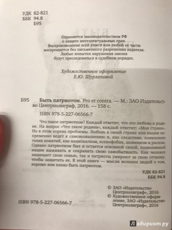 Что такое патриотизм? Каждый ответит, что это любовь к родине. На вопрос "Что такое родина", каждый ответит: "Моя страна". Но в этом корень проблемы. Любовь к своей стране или нации непременно ведет к самовозвышению и, как следствие, появлению таких понятий, как национализм, ксенофобия, шовинизм и расизм. Однако патриотизм был и остается основной силой, позволявшей нации выживать и сохранять свою самобытность. Как человек защищает свою семью, так и патриоты умирают за свою отчизну, чтобы защитить ее. В этой книге - мысли великих людей о том, хорошо или плохо быть патриотом.