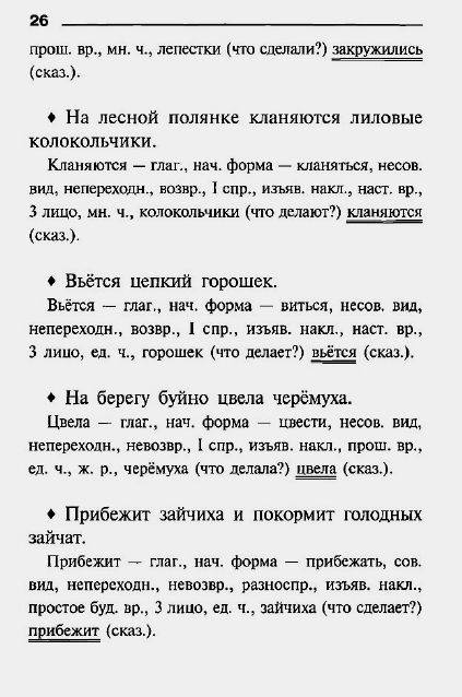 В конце книги 10 страниц посвещены разбору предложений по всем частям речи.