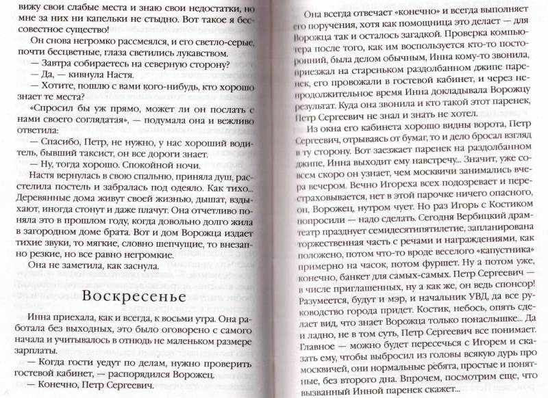 Анастасия Каменская и ее бывший коллега Юрий Коротков приехали в далекий сибирский город Вербицк. Настин брат собирается построить здесь дорогой пансионат, и попросил их найти подходящее место. Однако, властям Вербицка не до московских инвесторов. В самый разгар предвыборной гонки по городу прокатилась волна таинственных убийств экологов. Люди во всем винят чиновников. Уж больно рьяно мэр и его друзья отстаивают звероферму, притаившуюся в глухом таежном лесу. А ведь говорят, что именно она - ферма - вредит местной экологии. Разумеется, это дело увлекло Каменскую намного сильнее, чем поиски какого-то там участка…