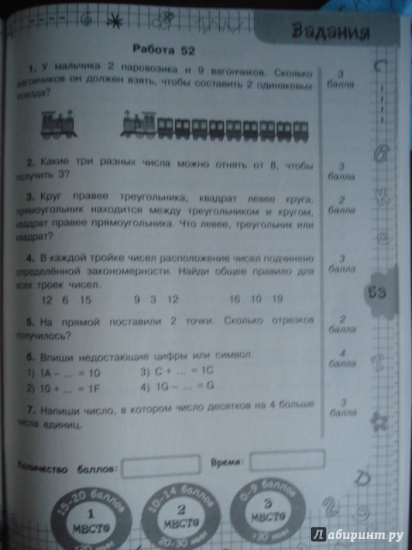 Пособие нравится. Решаем с ребёнком в 1 классе. Но есть вопросы к некоторым задачам. Например, в работе 1 задача 7. Значения N и T надо найти методом исключения подстановкой. Это не очевидно. И создается впечатление, что в задании опечатки. Или в работе 3 задача 6: условие сформулировано не корректно. Спрашивается: НА...