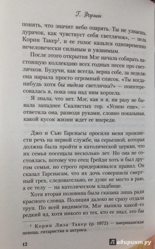 Что сказать - Гейл Форман, как всегда, на высоте. По крайней мере для меня. Книга впечатлила, читается легко, хочется узнать, что будет дальше, поэтому с трудом откладываешь книгу, чтобы сделать домашние дела. В очередной раз убеждаешься, что мы очень часто принимаем вещи такими, какими хотим, а не какие они на самом ...