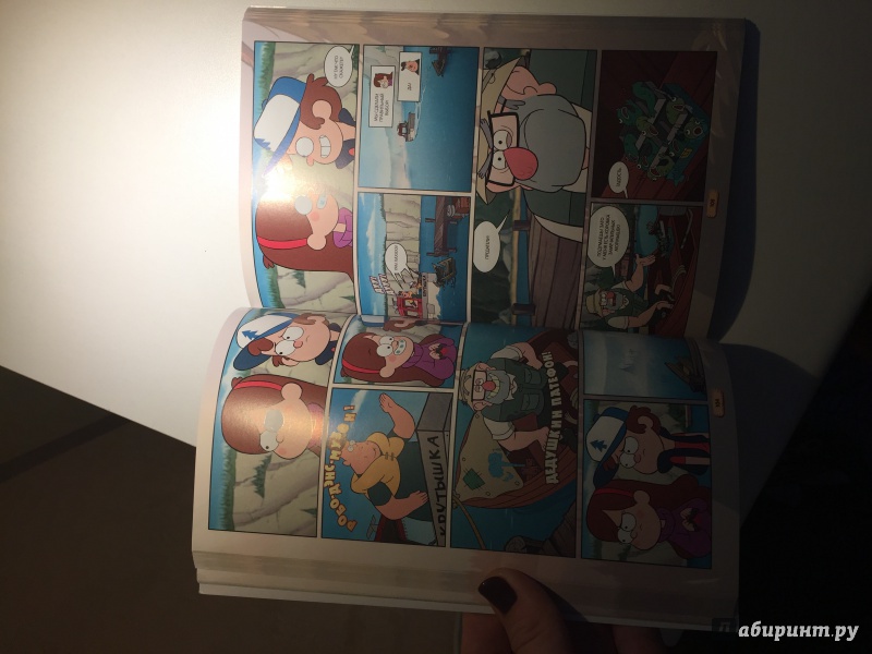 Вы сможете максимально подробно рассмотреть красочные кадры сериала и найти отсылки и пасхалки, которые не заметили при просмотре сериала! Теперь можно растянуть удовольствие и насладиться приключениями Диппера и Мэйбл, перечитывая остроумные реплики и любимые сюжеты! Графический роман станет не только желанным дополнением в коллекцию фаната, но и приятным знакомством с таинственным городком "Гравити Фолз" для тех, кто только начал это увлекательное путешествие.
