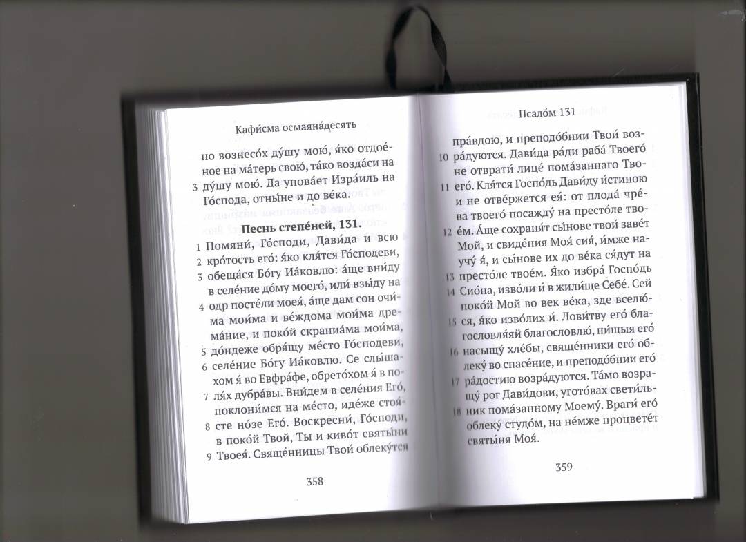 Отличный Псалтирь. Ожидал правда с красными заголовками, пришел с черными, но всё равно он мне очень понравился, есть закладка, очень удобный, то что надо. На фотографиях цифры на правых страницах расположены справа, мне же пришел как положено с лева, видимо исправили этот недочет. Страницы плотные, белые, шрифт крупн...