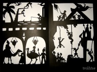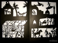 Хотите добавить немного волшебства? Поставьте за книгу лампу и разглядывайте детали среди бумажных теней.
