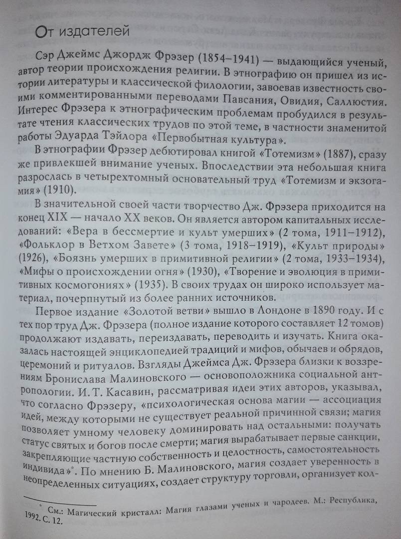 Классический труд замечательного, настоящего, а не кабинетного ученого и мыслителя. Невероятно интересно читать и перечитывать. НО:не надо судить о данном исследовании с позиции 21 века. ФРЕЗЕР-подданный колониальной Великобритании, воспитанный в ее же традициях. Ведь не перестаем же мы любить Киплинга, даже порой и ...