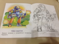 Неплохие раскраски, недорогие. Листы не очень плотные. Формат тетрадочный. 7 разворотов. Картинки с описанием. Мальчуковская тематика.