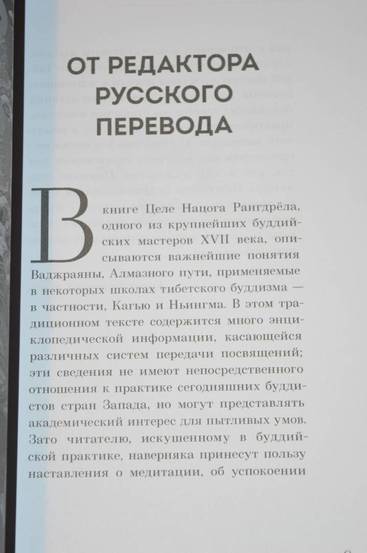 Целе Нацог Рангдрёл (XVII в.), буддийский лама тибетской традиции Другпа Кагью, кратко представляет читателю основные черты "Пути созревания" и "Пути освобождения" - двух стадий практики буддизма Ваджраяны (Алмазной колесницы). Этот труд был написан Целе Нацогом Рангдрёлом в виде ответов на серию вопросов, которые ему задал один из учеников - Мипхам Гёнпо. Сами вопросы в оригинальный текст не включены. Здесь подробно представлены важнейшие ступени обучения, применяемые в некоторых традициях тибетского буддизма, - в частности, Кагью и Ньингма.