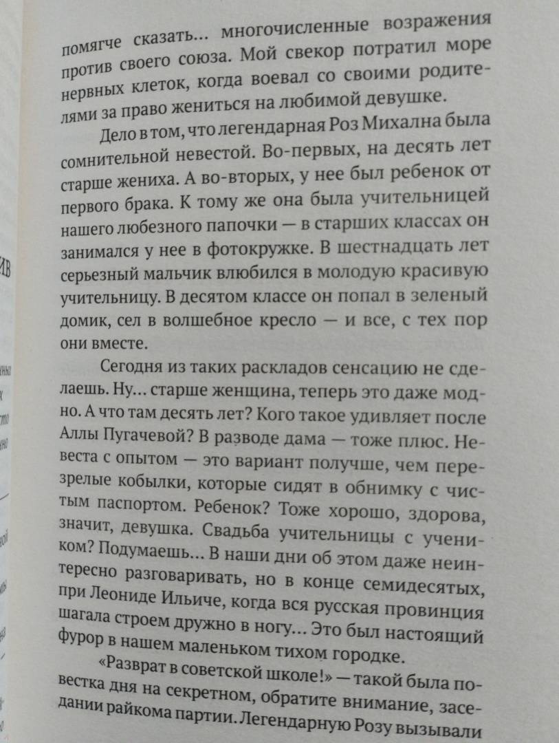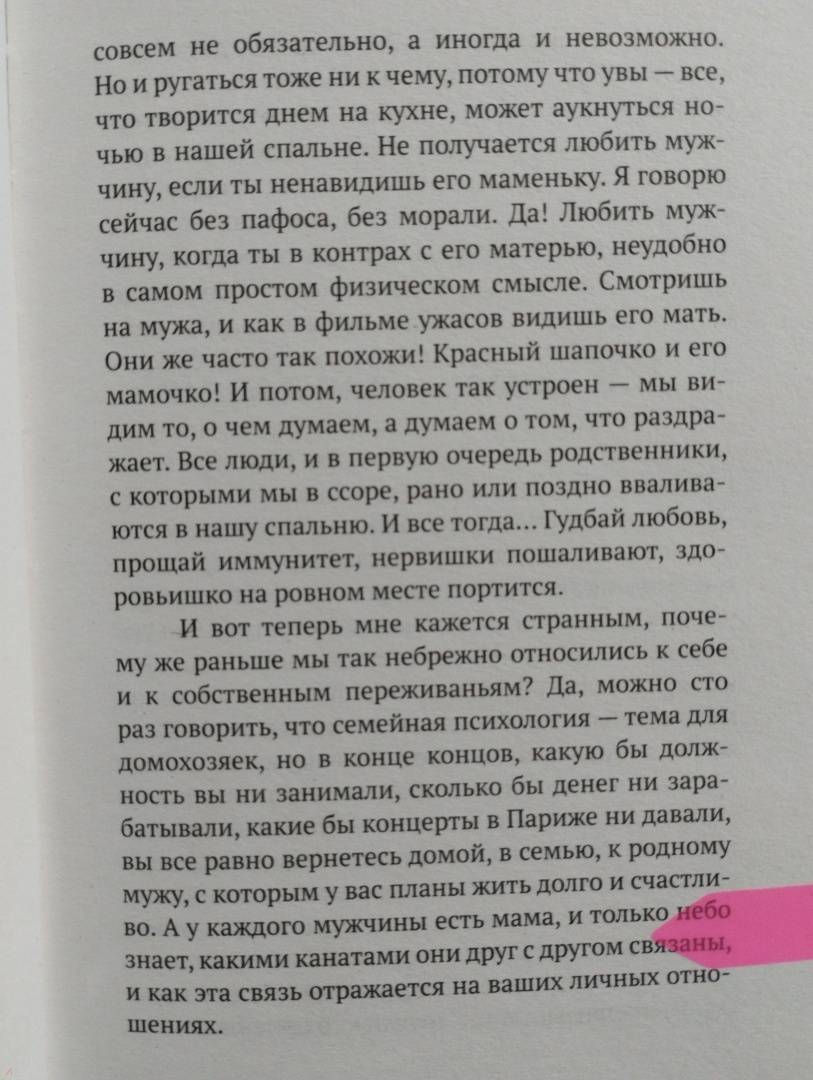 Обалденная книжка! Свекровь эффектная, яркая стерва и умная женщина, у такой есть чему поучиться, хоть она и страшная эгоистка, но это здоровый эгоизм. В книжке нет историй из жизни лохушек и жлобов, что радует.