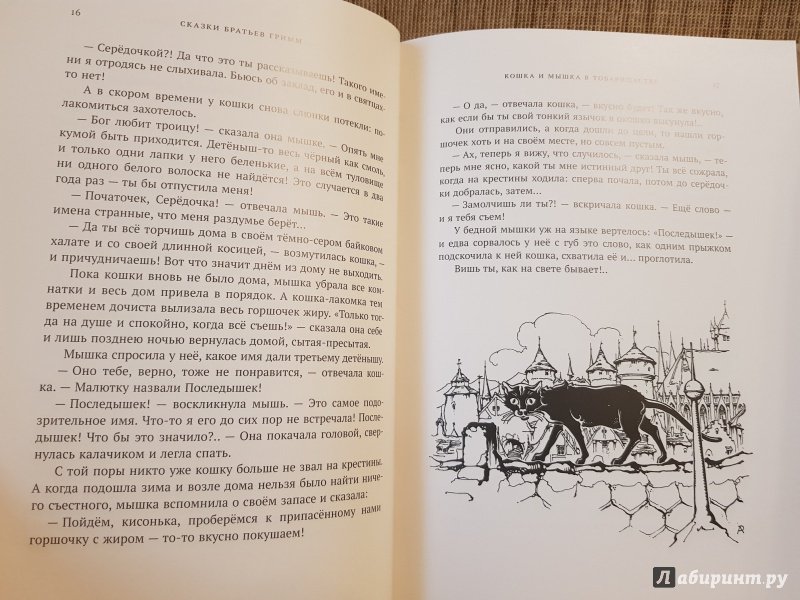 Чудесное издание, очень приятно держать в руках. Глянцевые листы, тиснение на обложке, удобный формат. Текст легко читать. Дети 6 и 7 лет в восторге от сказок (и всех этих кровожадных убийств).