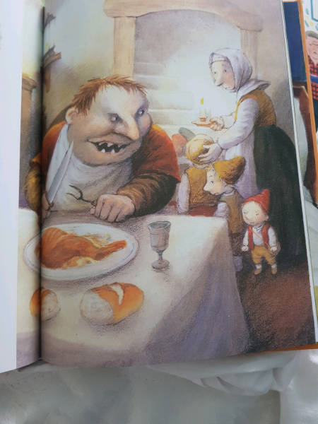 Прекрасный дизайн книги, отличная бумага, удобный шрифт, шикарная обложка, я расхваливал и расхваливал бы эту книгу.... Но есть здесь ложка дегтя - это агрессивный перевод сказок, и иллюстрации людоеда с ножом. А красная шапочка вообще кончилась на том, что ее съели... и не было дровосеков, которые ее спасли. Жаль, но...