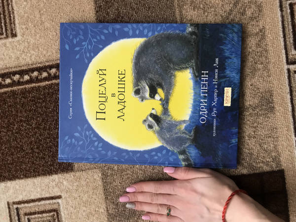 Покупала эту книгу много лет назад, дети, что будучи малышами просто обожали ее, что сейчас в возрасте 7ми и 8ми лет с удовольствием перечитывают ее, уже самостоятельно! А традиция оставлять «поцелуй в ладошке», сохранилась у нас с детьми в жизни!