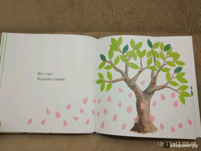 Очень дорогая книга, очень разрекламированная и совершенная пустая! Из рисунков только дерево, на котором то добавляется, то уменьшается количество листьев. Ребёнку смотреть ее не интересно, что не удивительно. Текста почти нет. За что такие деньги не понятно. Не советую!