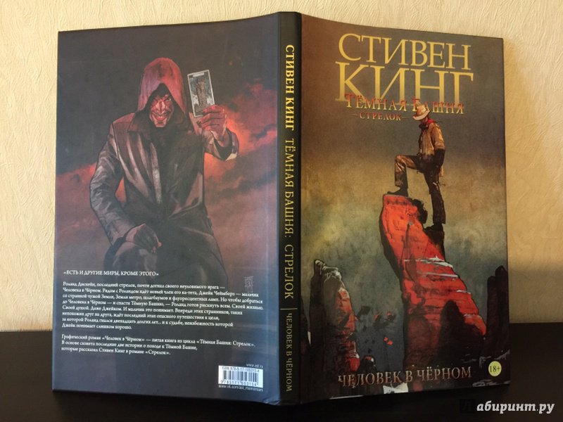 Роланд Дискейн, последний стрелок, почти догнал своего неуловимого врага - Человека в Чёрном. Рядом с Роландом идёт новый член его ка-тета, Джейк Чеймберз - мальчик со странной чужой Земли, Земли метро, шлагбаумов и флуоресцентных ламп. Но чтобы добраться до Человека в Чёрном - и спасти Тёмную Башню - Роланд готов рискнуть всем. Своей жизнью. Своей душой. Даже Джейком. И мальчик это понимает. Впереди этих странников, таких не похожих друг на друга, ждёт последний этап опасного путешествия к цели, за которой Роланд гнался двенадцать долгих лет... и к судьбе, неизбежность которой Джейк понимает слишком хорошо. Графический роман "Человек в Чёрном" - пятая книга из цикла "Тёмная Башня: Стрелок". В основе сюжета последние две истории о походе к Тёмной Башне, которые рассказал Стивен Кинг в романе "Стрелок".