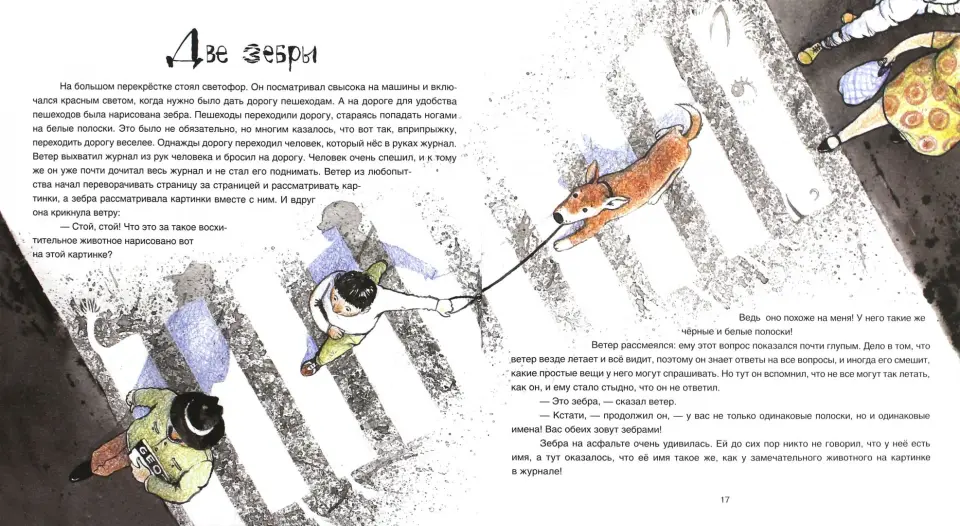 К примеру, на обложке разгуливает зебра по одноименной дорожке, "сфотографированная" художником с какого-то тридевятого этажа. Весьма экзотично.