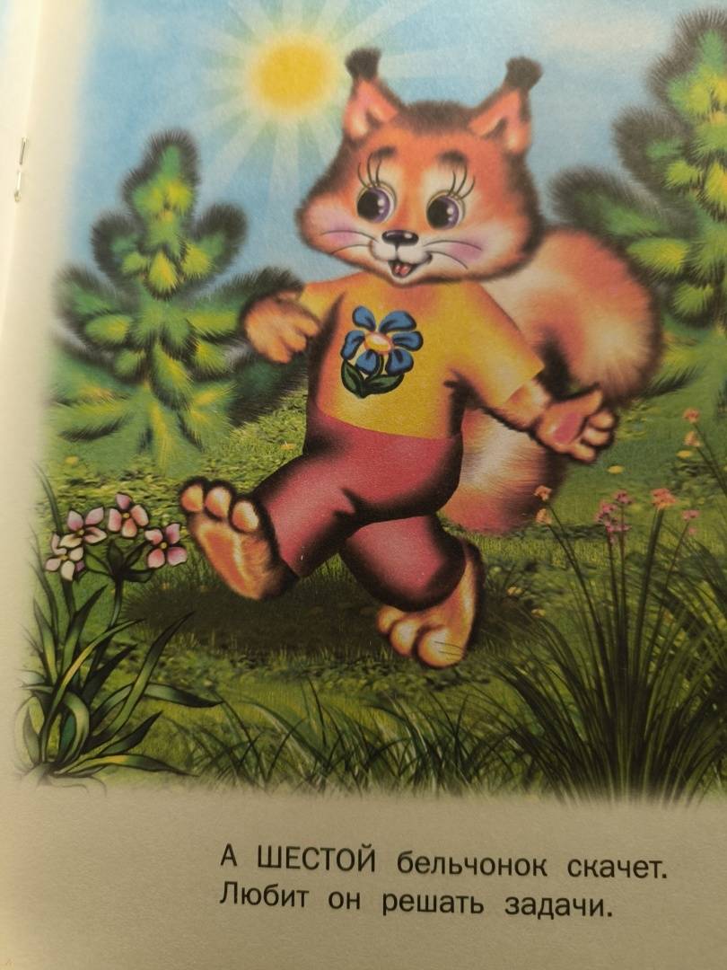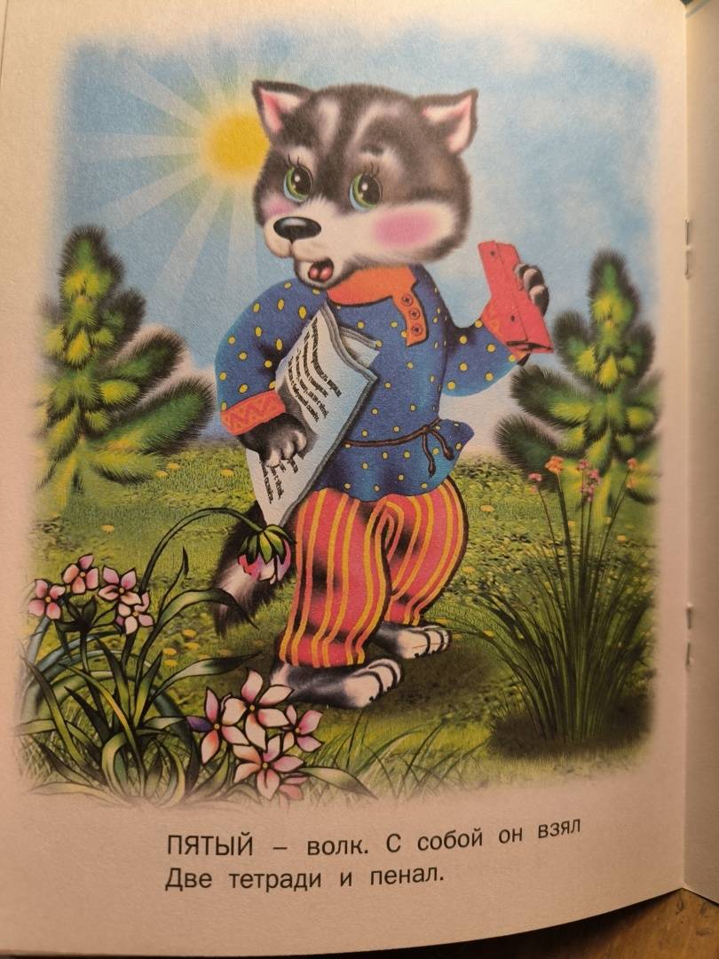 Очень интересная книжечка в плане обучения малыша счету. Филин приглашает в школу лесных зверят учиться счету, чтению, письму. Иллюстрации крупные, красочные, мордочки зверюшек добрые. Стишки короткие, легко запоминаются. Обложка из тонкого картона. Очень довольна книжечкой.