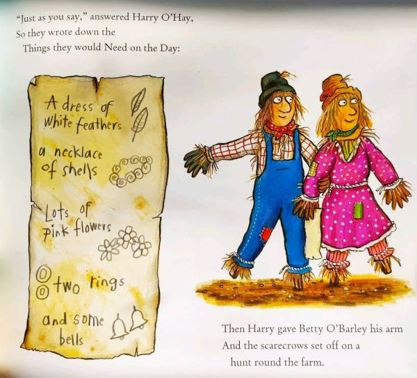 THE SCARECROWS' WEDDING is the eagerly awaited new picture book from the creators of THE GRUFFALO and STICK MAN. Written in Julia Donaldson's glorious rhyme and illustrated in glowing colour by Axel Scheffler, THE SCARECROWS' WEDDING is a fabulous love story, with drama, humour, originality - and a happy ending! Two scarecrows, Betty O'Barley and Harry O'Hay, are planning the perfect wedding. But wicked scarecrow, Reginald Rake, has other ideas and almost ruins their special day. Harry must become a hero before he and Betty can have the wedding of their dreams.