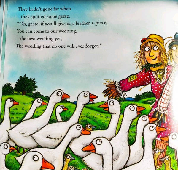 THE SCARECROWS' WEDDING is the eagerly awaited new picture book from the creators of THE GRUFFALO and STICK MAN. Written in Julia Donaldson's glorious rhyme and illustrated in glowing colour by Axel Scheffler, THE SCARECROWS' WEDDING is a fabulous love story, with drama, humour, originality - and a