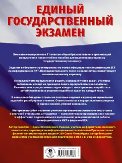 Задания в сборнике сгруппированы по темам официальной спецификации ЕГЭ по информатике и ИКТ. Последовательность тем и их количество соответствую