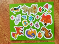 Плакат большой (48,5*68,5 см), наклейки после приклеивания при желании можно отклеить, но повторно они уже плоховато липнут. На обороте плаката есть забавные стишки про зверят. В целом, хороший способ для знакомства с лесными жителями.