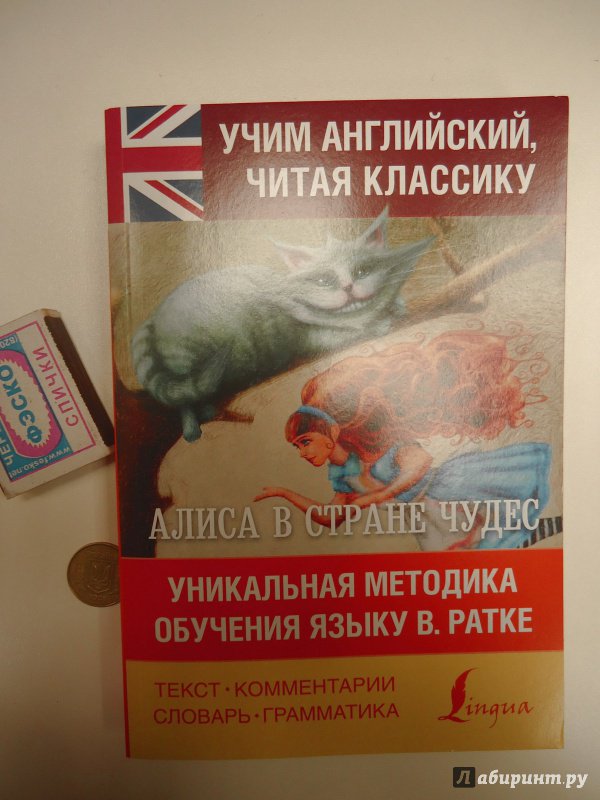 Данная книга содержит одновременно 2 части-страну чудес и Зазеркалье. Удобно читать с пояснениями. Бумага газетная, что не очень удобно для работы с карандашом. Грамматический справочник занимает половину книги. Читать интересно, реально словарный запас пополняется.