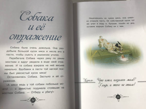 Великолепная книга. Очень содержательная и поучительная. Купила дочке 8 лет для самостоятельного чтения. Буквы крупные, к каждой басне идет рисунок. С дочкой анализируем и рассматриваем картинки. В этом возрасте очень важно,чтобы были красочные рисунки-это вызывает интерес и формируется привычка к чтению, любовь к кни...