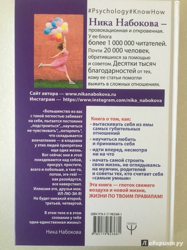 Ника Набокова - автор двух нашумевших бестселлеров "В постели с твоим мужем" и "Исповедь бывшей любовницы", создательница одного из самых откровенных и провокационных пабликов @nika_nabokova, девушка, открыто заявляющая: "Я знаю все про измены и сложные отношения". "Большинство из вас с такой легкостью забивает на себя, пытается постоянно "подстроиться", "научиться не чувствовать", "потерпеть", что складывается впечатление - в кладовке у этих людей припрятана еще одна жизнь. Вот сейчас они в этой поиздеваются над собой, про…т, простите, всего и побольше, а там-то, потом, эге-гей! - как разойдутся, все наверстают. Иллюзия это, друзья мои.