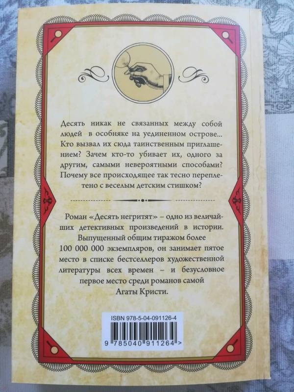 Агата Кристи поистине король детективного жанра. В очередной раз её произведение доставило мне огромное удовольствие. Непредсказуемое развитие событий, происходящее на острове, с постоянно пропадающими героями и неожиданная развязка данного действа. Определённо советую к прочтению.