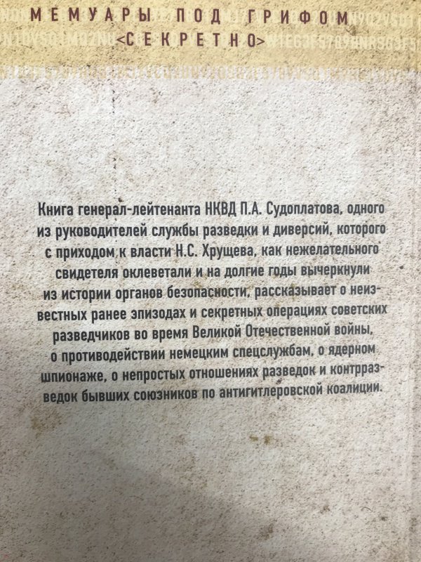 Вот и еще одна книга воспоминаний генерала Судоплатова от издательства "Алгоритм". Воспоминания Судоплатова как свидетеля большой эпохи интересны. Хорошо, что их переиздают.