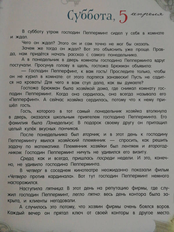 сказка моего детства. но я как фанат субастика разочарован работой петелиной. что за носы? какая кошка и мышь у героя если хозяйка не терпит животных и полдерживает идеальную чистоту? полицейкие в форме времен 1й мировой, серьезно? понеделькус - одноклассник пеперминта, а на картинках на 20-30 лет его старше. художник...