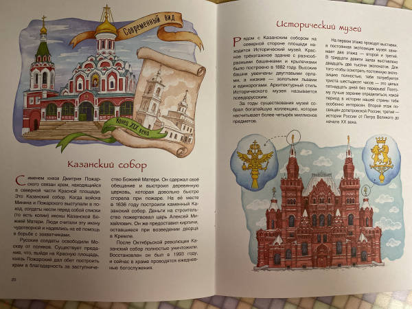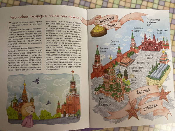Книгу покупали в прошлом году перед поездкой в Москву, ходили по Красной площади с ней, читали, смотрели... получилось очень здорово... ребёнок доволен. Рекомендую книгу для младших школьников, 5-8 лет.