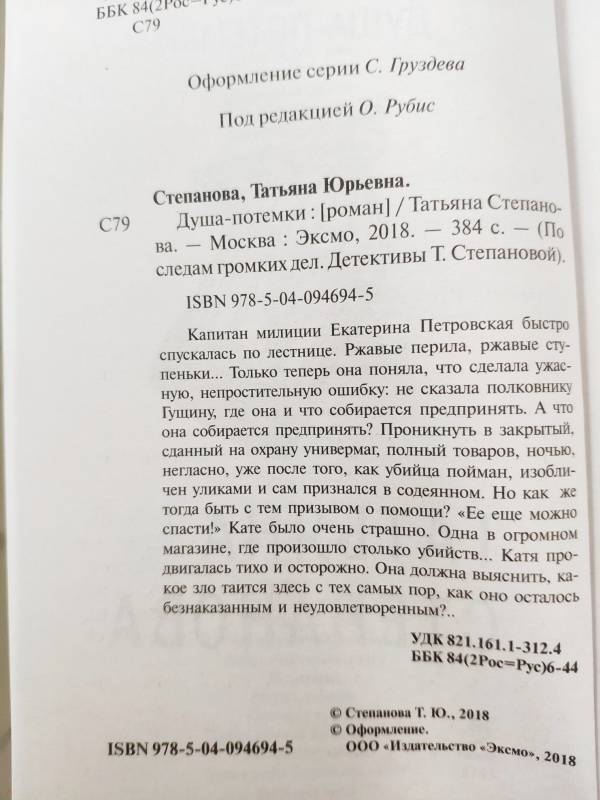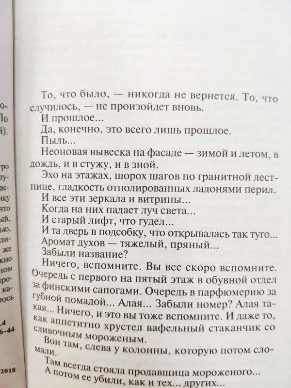 Капитан милиции Екатерина Петровская быстро спускалась по лестнице. Ржавые перила, ржавые ступеньки… Только теперь она поняла, что сделала ужасную, непростительную ошибку: не сказала полковнику Гущину, где она и что собирается предпринять. А что она собирается предпринять? Проникнуть в закрытый, сданный на охрану универмаг, полный товаров, ночью, негласно, уже после того, как убийца пойман, изобличен уликами и сам признался в содеянном. Но как же тогда быть с тем призывом о помощи? "Ее еще можно спасти!" Кате было очень страшно. Одна, в огромном магазине, где произошло столько убийств… Катя продвигалась тихо и осторожно. Она должна выяснить, какое зло таится здесь с тех самых пор, как оно осталось безнаказанным и неудовлетворенным?..