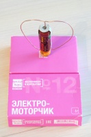 Описание: Поместив медный контур в магнитное поле, вы заставите его вращаться с помощью электрического тока от батарейки.