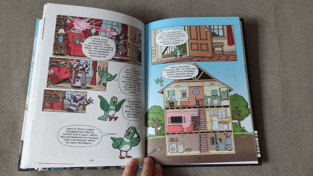 Ребёнок с большим интересом слушает рассказы о роботах, описанные в книге. Это первый наш опыт и чтения комиксов и историй о роботах. Хочу сказать, что опыт положительный и с удовольствием посмотрим что ещё есть в этой серии книг!