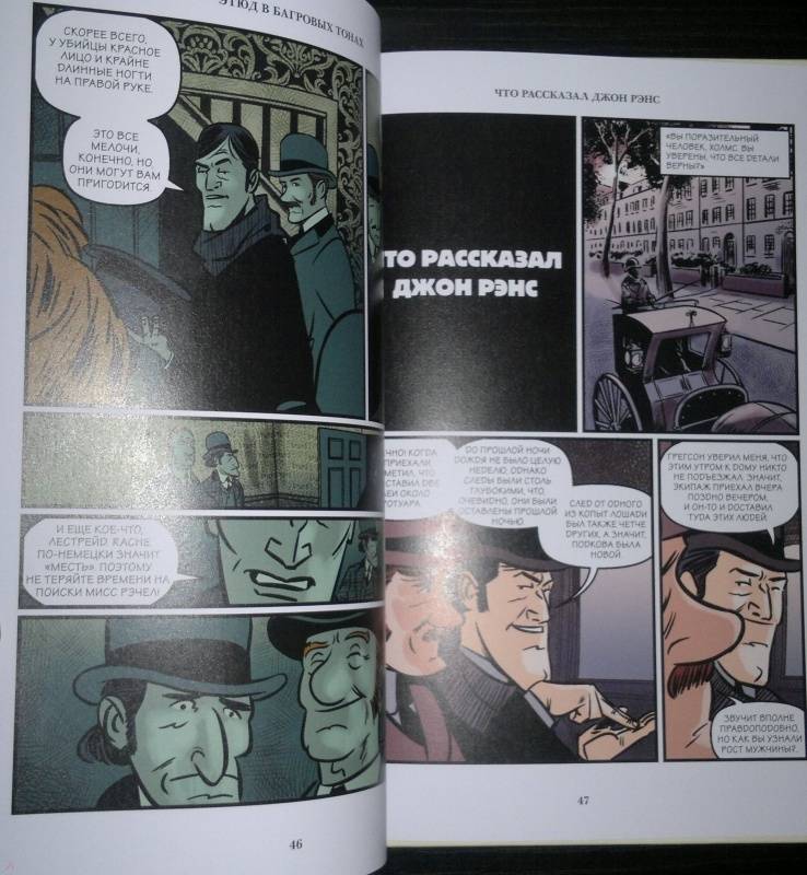 Очень качественное издание! Качество иллюстраций отличное, бумага плотная, картинки хорошо пропечатаны, текст достаточно крупный, читается комфортно. Интересный формат известной истории о Шерлоке Холмсе.