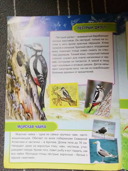 Атлас для детей "Животные и птицы Европы" с наклейками. Ребёнку 3 лет понравилось клеить наклейки и рассматривать картинки, иногда слушает о животных, но всё - таки для деток чуть постарше 5-6 лет,как и указано 6+