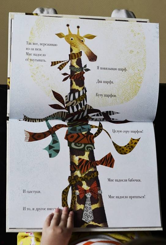 Жираф Самсон прячет свою длинную шею в листве деревьев, в воде, маскирует шарфами и бабочками, ужасно стесняется, когда кто-то...