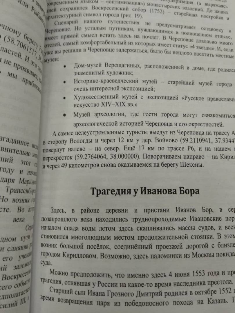 Книга понравилась. Автор предлагает варианты четырёх автомобильных путешествий, "пролегающих по территории Вологодской и Архангельской областей". "Путешествие 1. По царскому пути: (Москва) - Дмитров - Калязин - Углич - Череповец - Кириллов - Вологда - Ярославль. Путешествие 2. На Соловки:(Москва, Волог...
