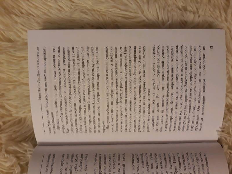 Хорошая история.Как всегда что-то новое для меня из жизни людей в других странах.Перевод простенький.Согласна с теми,кто пишет про нераскрытые характеры и прочее.Но история самой женщины,ее семьи заставляет задуматься о том,что нас всех волнует,кто бы где ни жил.Вот гордость-она нужна,когда необходимо просто выжить?Лу...
