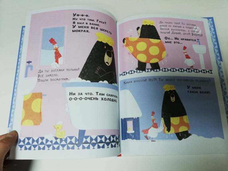 Обожаем серию про Медведя и Гусика! У нас есть «Пора уже спать», но эта – тоже очень смешная. Картинки говорят даже больше чем текст, настолько выразительными получились у художника герои. Глядя на них, смеялся не только ребенок, но и мы с женой :) Гусь – гиперактивный, а Медведь – домосед. Характеры очень яркие и уз...