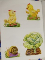 Фигурки для вырезания крупные, рисованные. Печать хорошая, цветовая гамма хоть и не слишком богатая, но цвета яркие, хорошие. Декорации (курятник, например) и сами фигурки очень крупные.