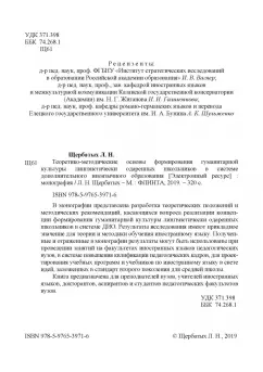 В монографии представлена разработка теоретических положений и методических рекомендаций, касающихся вопроса реализации концепции формирования гуманитарной культуры лингвистически одаренных школьников в системе ДИО. Результаты исследования имеют прикладное значение для теории и методики обучения ино