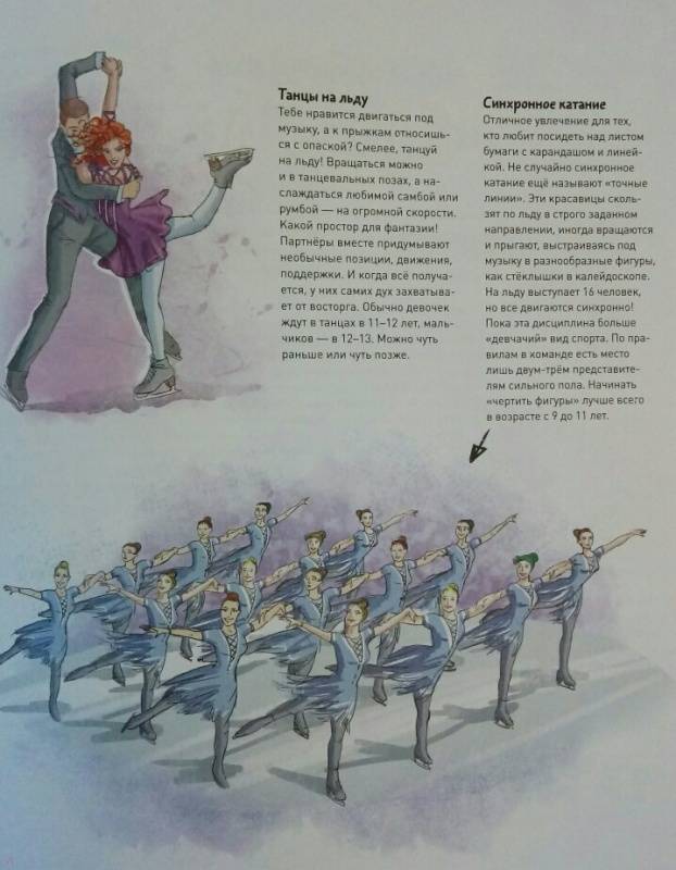 Эта книга расскажет детям о том, как устроен мир фигурного катания. В ней вы найдете вдохновляющие истории побед, удивительные факты и полезные советы. Дети научатся различать шаги, прыжки и вращения, попробуют выполнить свои первые упражнения на льду. А также заглянут "за кулисы" и узнают, как заливается каток, кто помогает спортсменам готовиться к выступлениям, каким должен быть идеальный костюм, как судьи оценивают соревнования и многое другое.