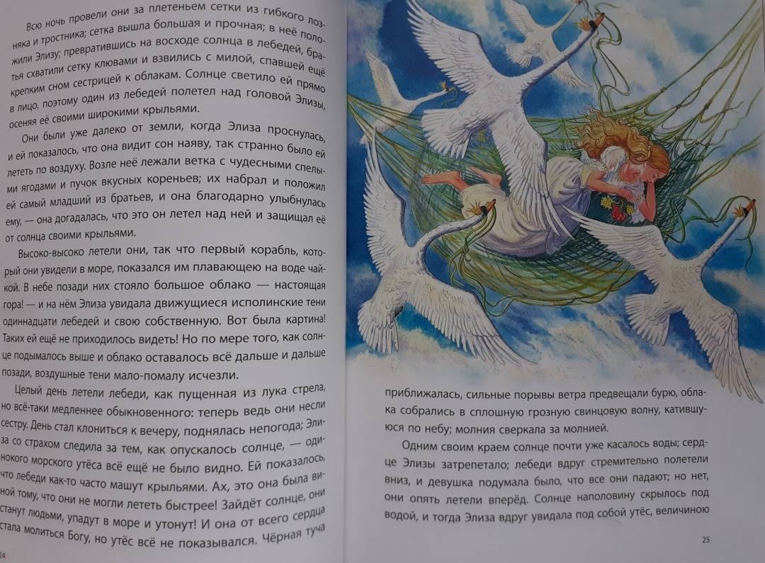 Эту волшебную сказку проиллюстрировала талантливая художница Елизавета Ведина, которая создала неповторимый образ Элизы и превратила книгу в изысканное красочное полотно - с запоминающимися героями, со множеством деталей, которые хочется разглядывать снова и снова.