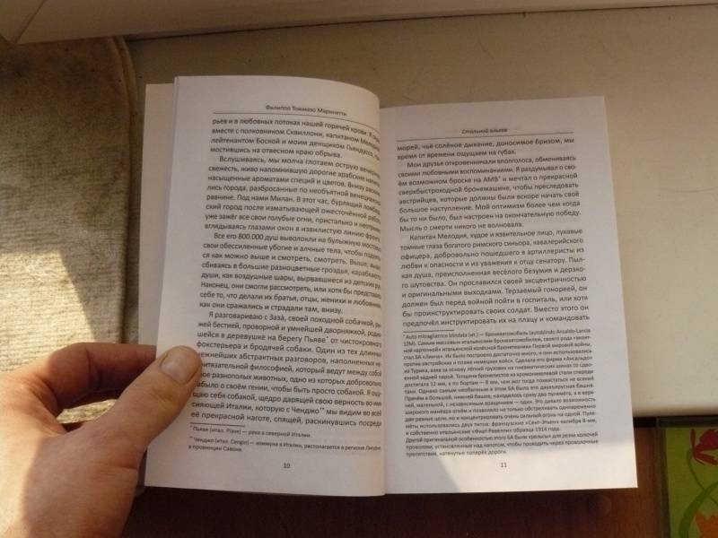 Первый тираж этой книги, вышедшей в 1921 году, был сразу же уничтожен из-за сверх-откровенной по тем временам обложки. Такими обложками сейчас уже никого не удивить, но текст по прежнему ошарашивает и поражает. Лейтенант Маринетти, командир бронемашины, вместе со своим экипажем и личной собачкой Заз
